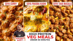 3 High Protein VEG Recipes IN 30 MINS! Soya Curry, Soya Pakoda Kadhi, ...